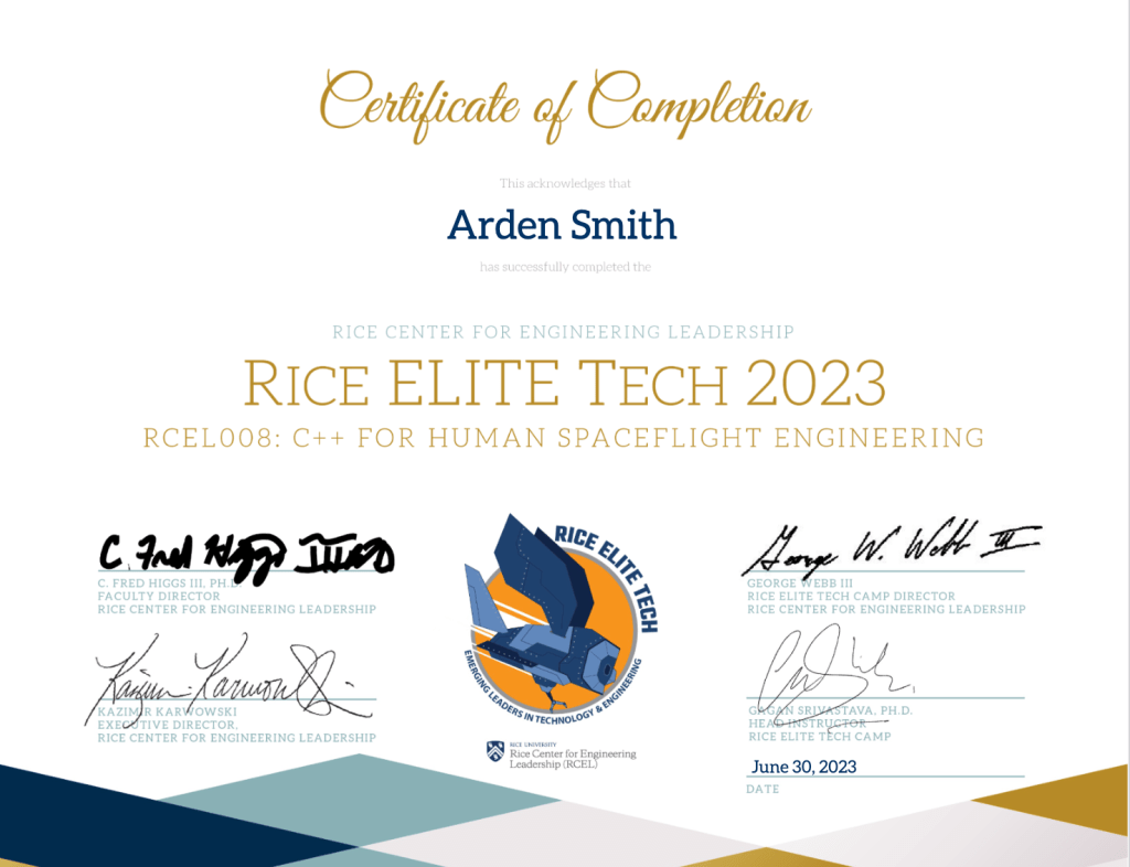 Rice Elite Tech certificate